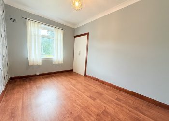 Window to back and side, wood effect flooring, twin light fitting, radiator.