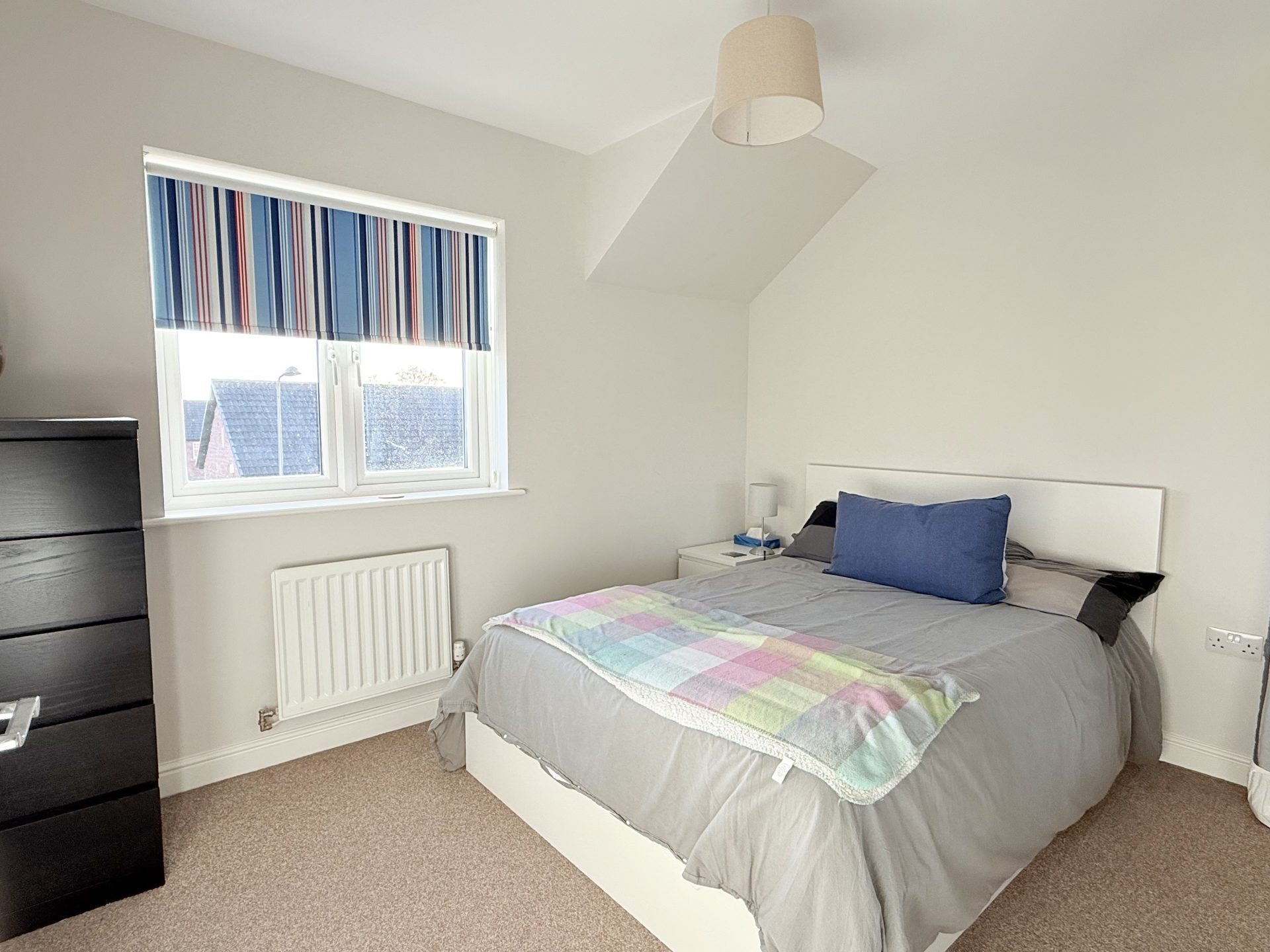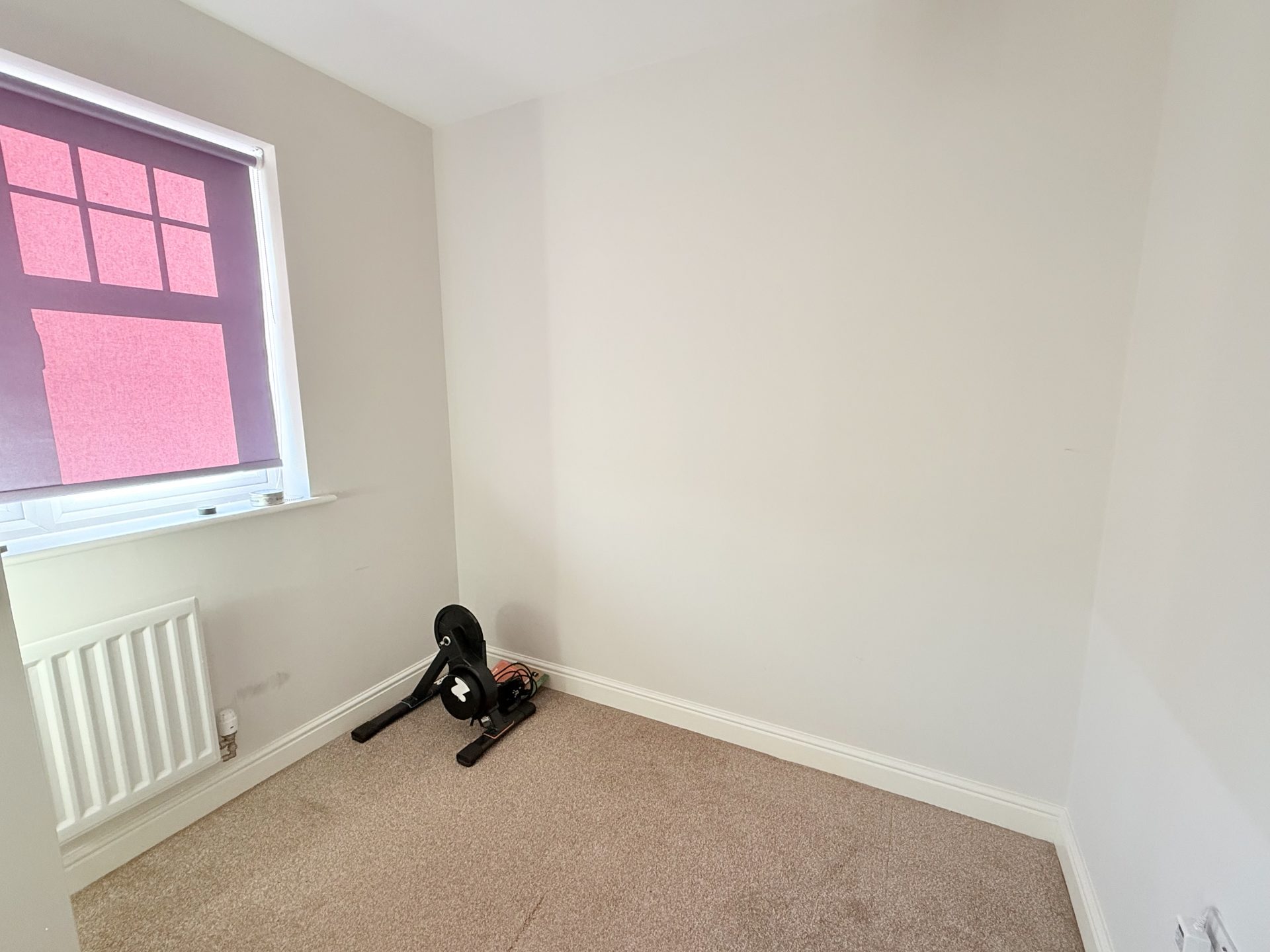 Double glazed window to front with roller blind, central heating radiator with thermostat and fitted carpet.