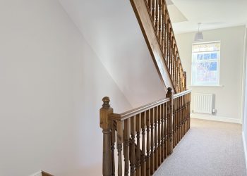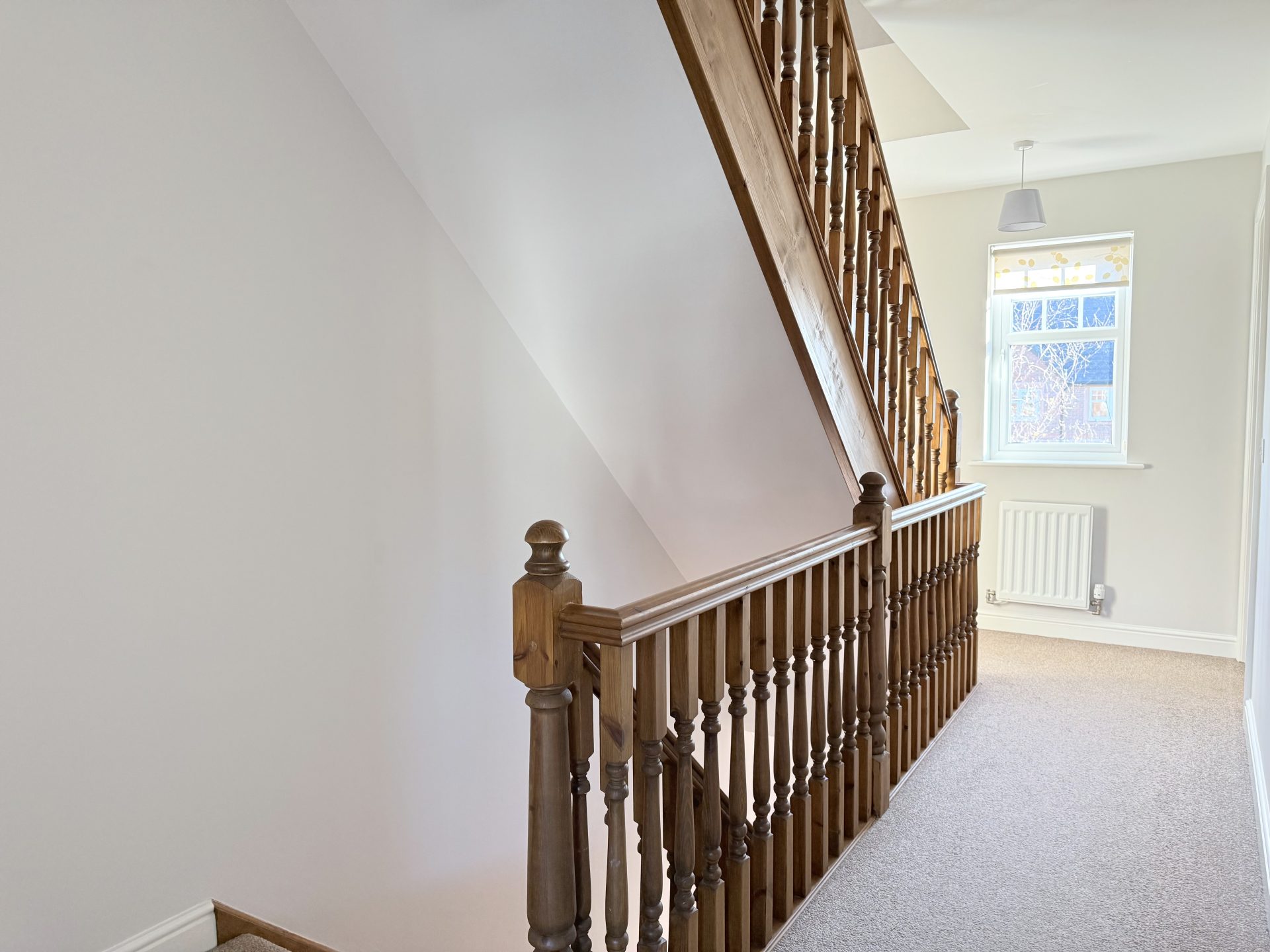 Two ceiling lights, fitted carpet, door to spacious family bathroom and doors leading to bedrooms 3 and 4. Central heating radiator with thermostat.