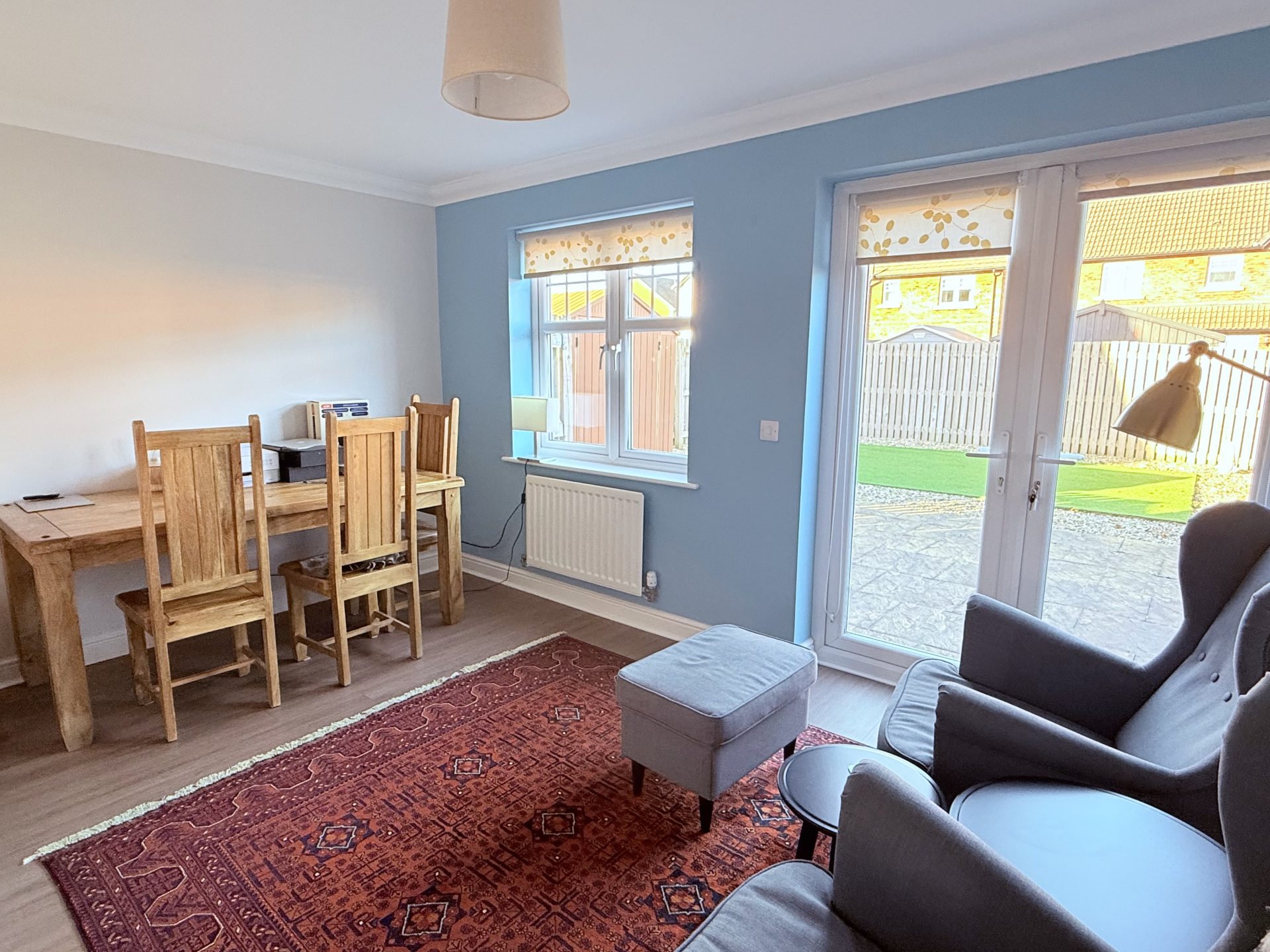 UPVC window to rear, UPVC French doors to rear leading it out to patio. Central heating radiator with thermostat, ceiling light, wood effect laminate flooring.