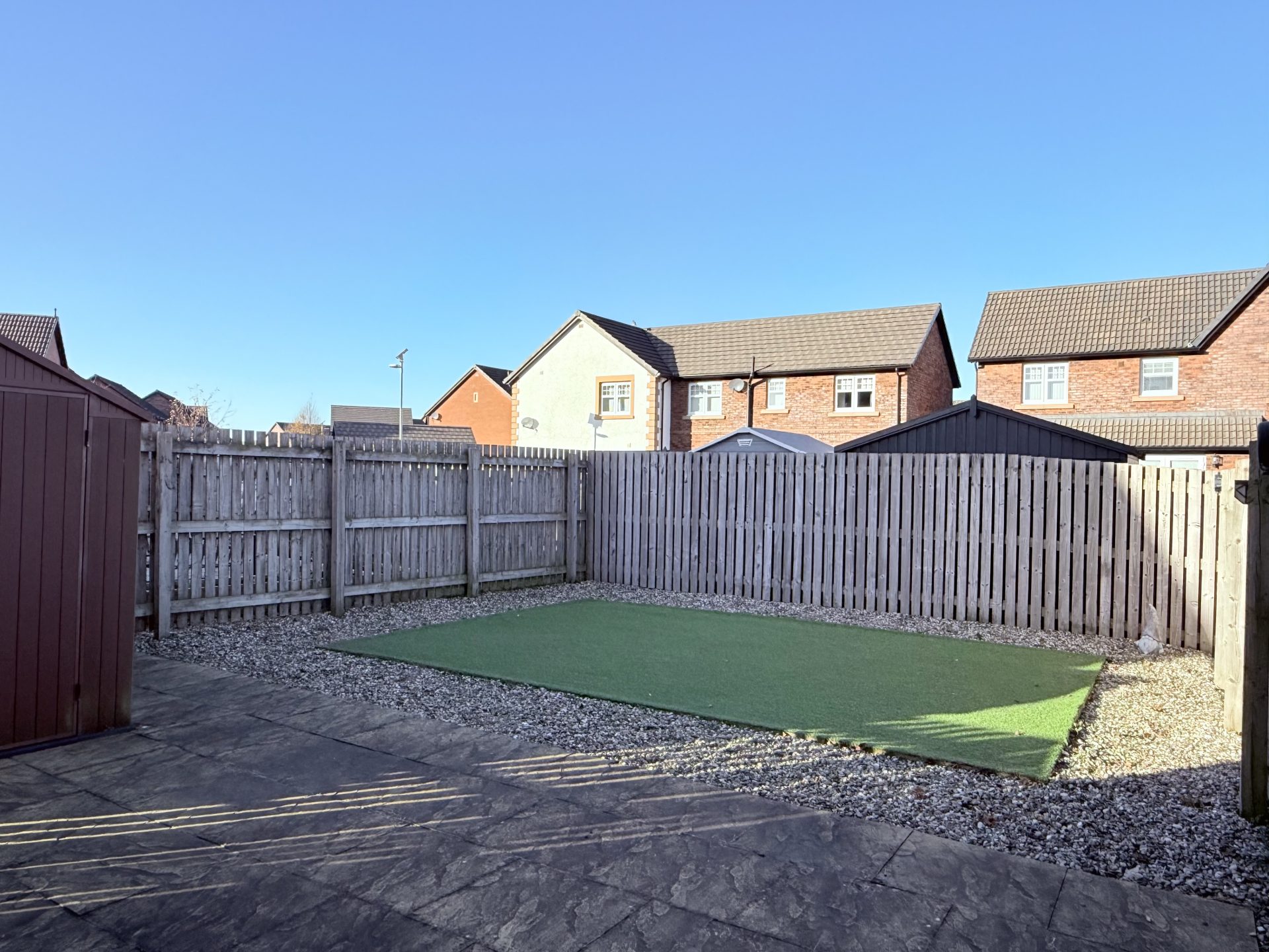 The rear garden is fully fenced with access from the patio doors in the living room and via a gate to the driveway. There is a large patio area and area laid with gravel and astro turf. The large storage garden shed is included. To the front of the property there is a small decorative garden area and to the side there is a large driveway with off road parking for two cars.