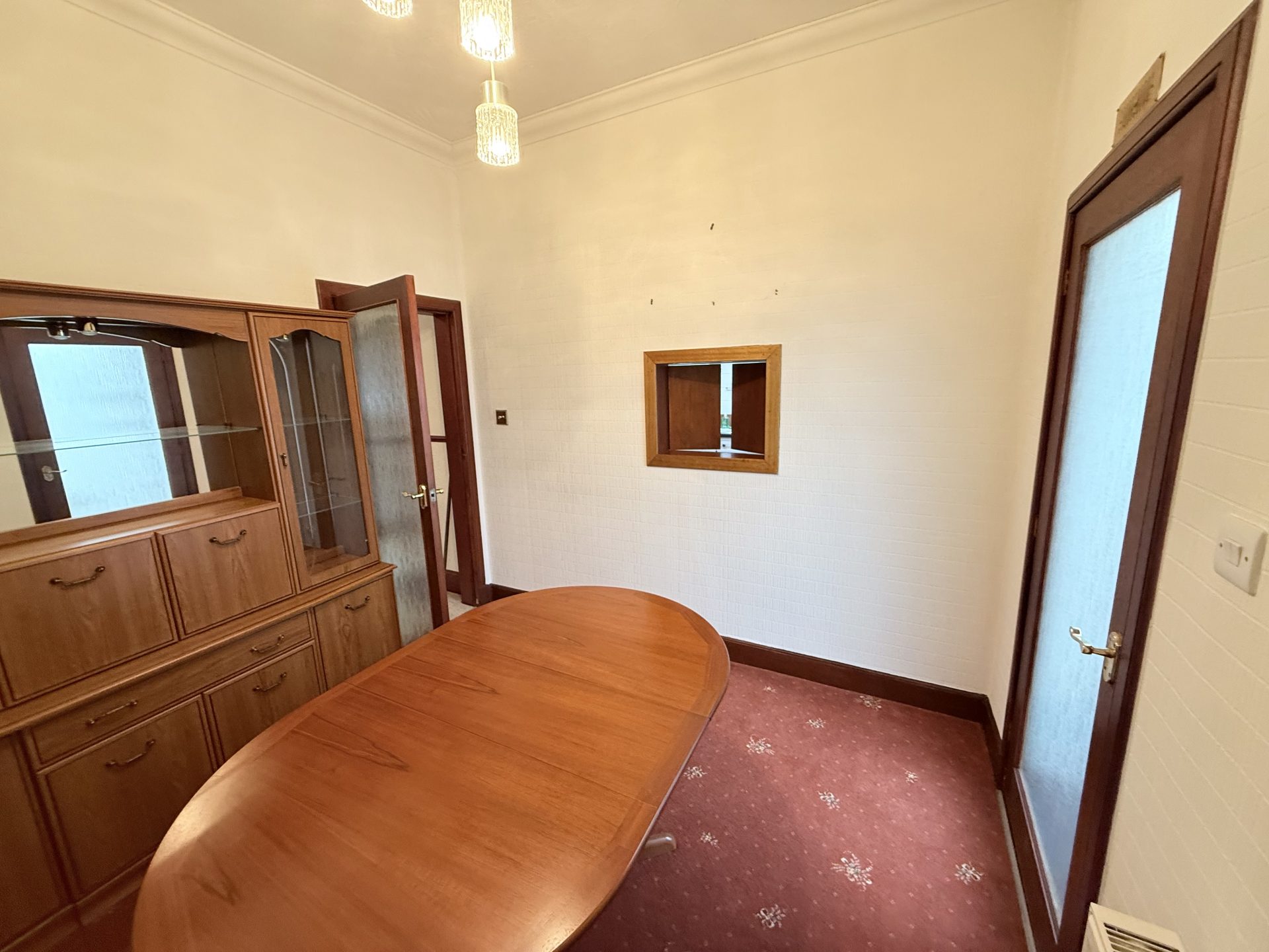 Coving, ceiling light, fitted carpet, serving hatch, timber & glass door leading to conservatory.