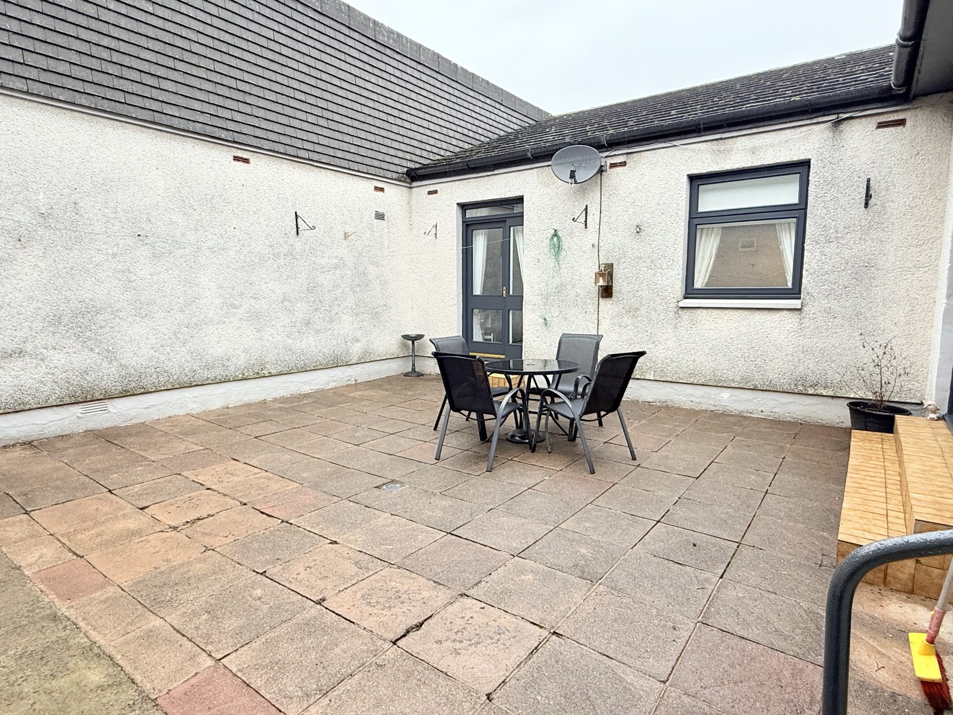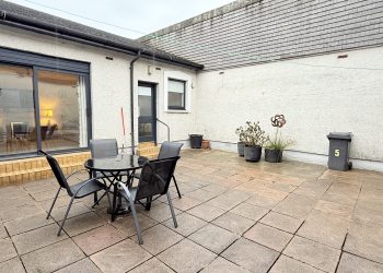 The bedrooms and public spaces in the property look over a private internal courtyard, offering a generous sheltered outside space. The courtyard features external lighting and a door to a private storage shed.